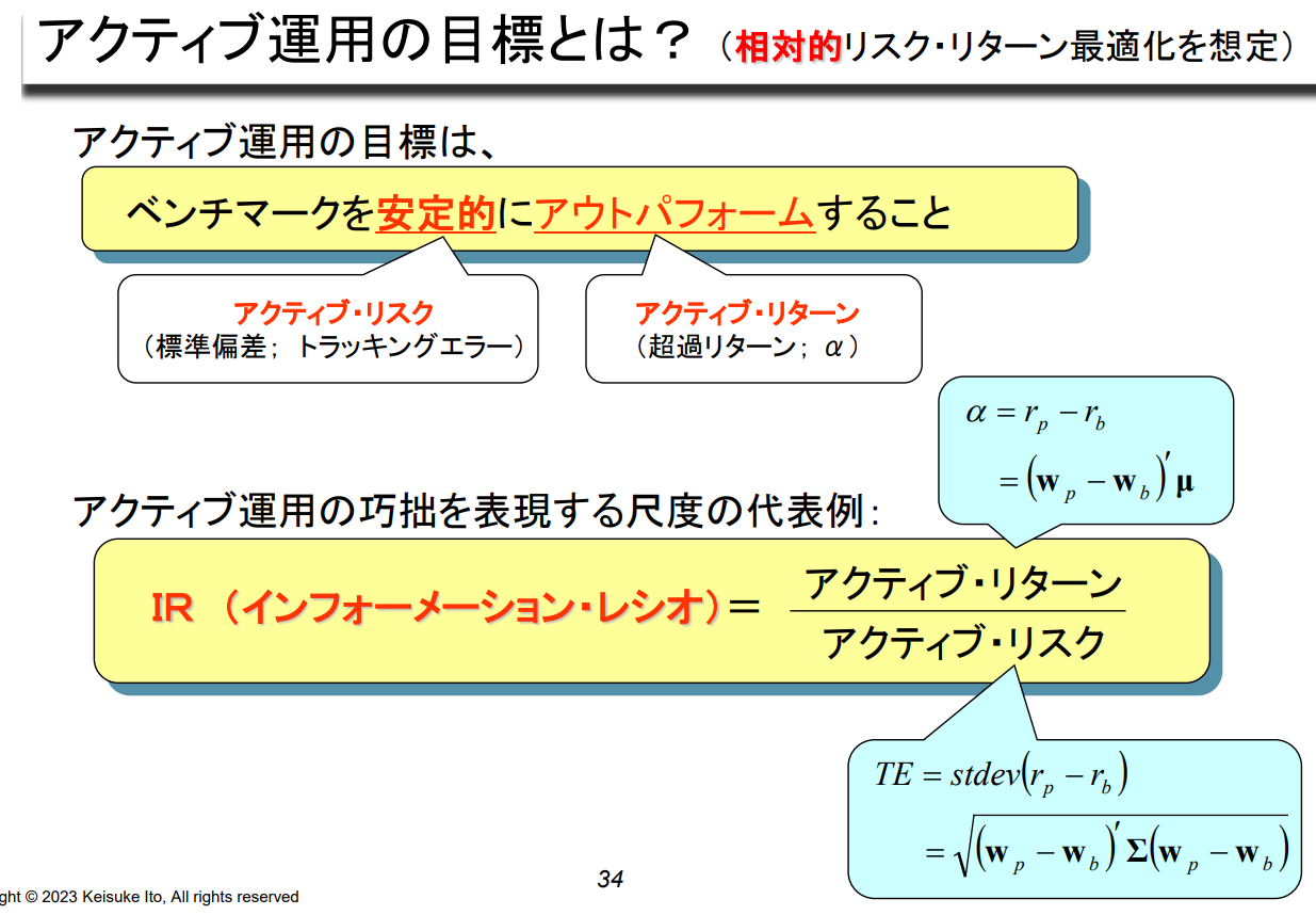 액티브 운용의 목표란? (상대적 위험-수익률 최적화를 가정)
