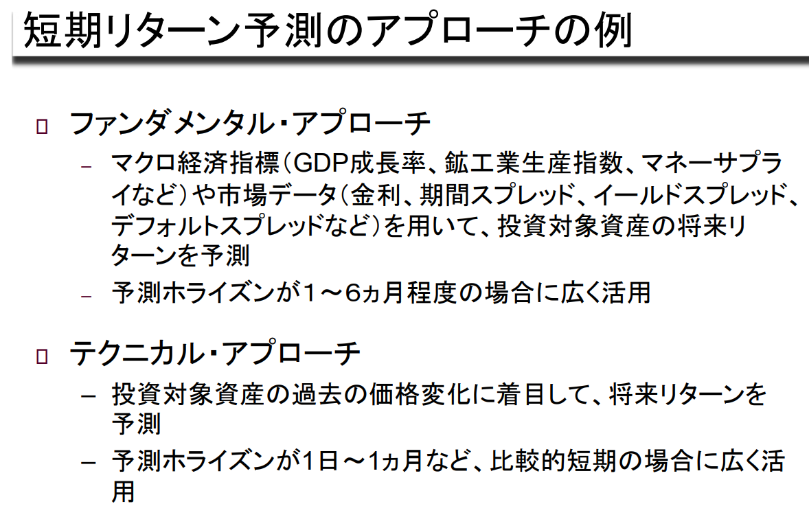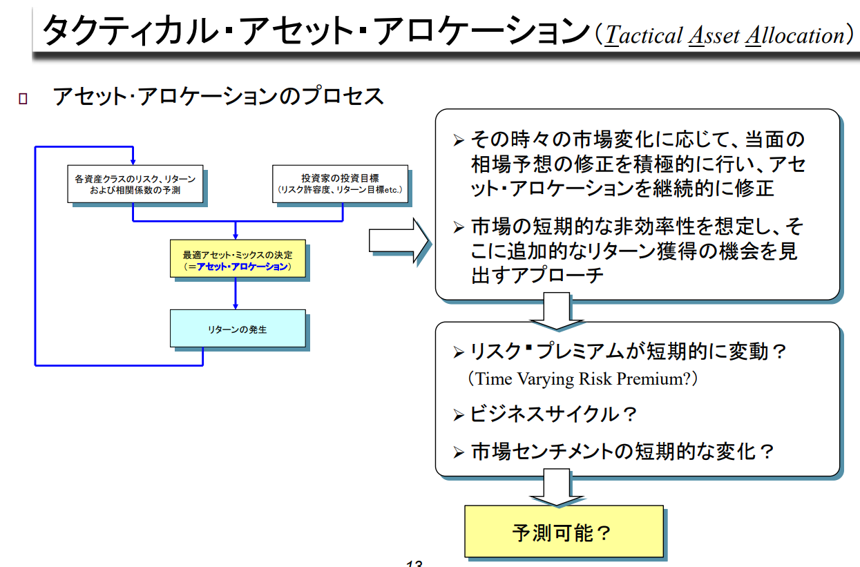 | 시장 변화에 따라 당장의 시장 전망을 적극적으로 수정하고, 자산 배분을 지속적으로 수정하는 접근 방식 시장의 단기적 비효율성을 가정하고, 이를 통해 추가 수익 창출의 기회를 찾는 접근 방식 ↓ |