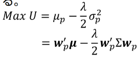 Max U = μp - (λ/2)σp^2 = w'pμ - (λ/2)w'pΣwp