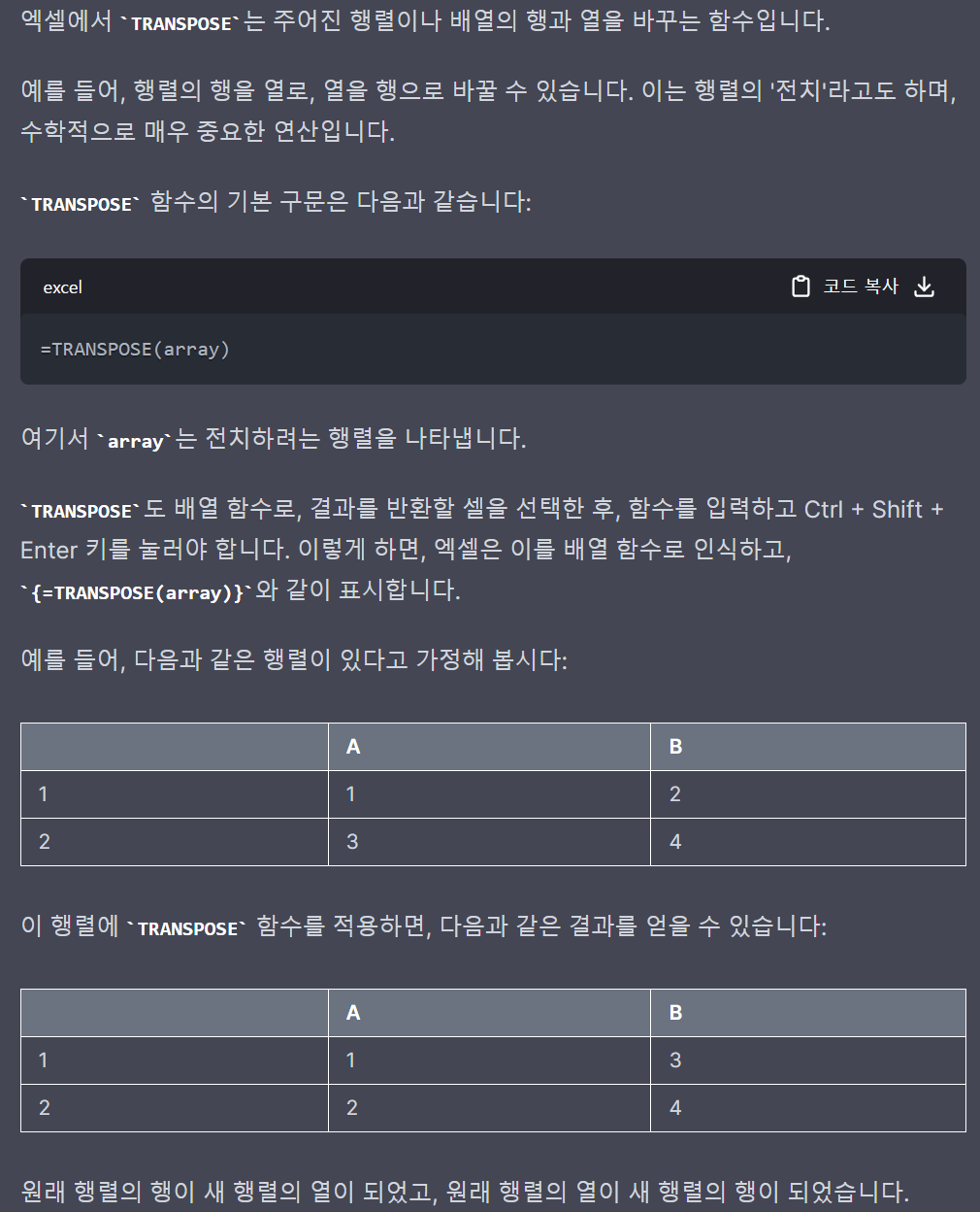 = mmult ( x 범위, y 범위 ) Ctrl+Shift+Enter