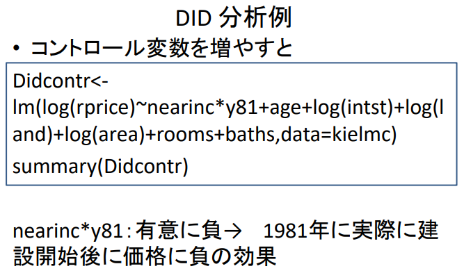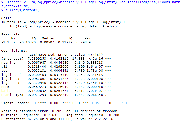 Didcontr <- lm ( log ( rprice ) ~ nearinc * y81