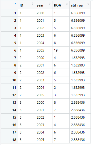 std_roa <- summarise ( by_ID , std_roa = sd ( ROA , na.rm = TRUE ) )