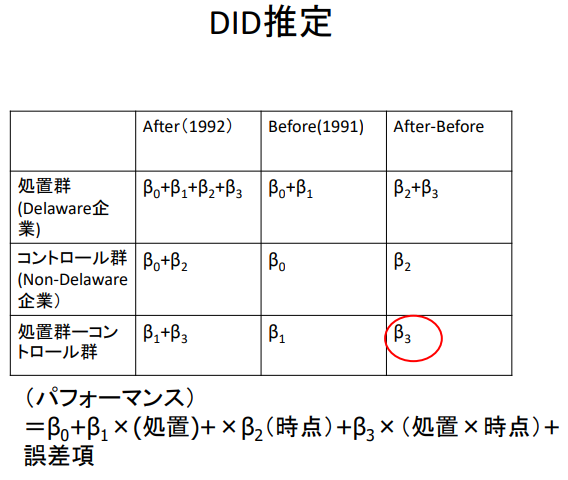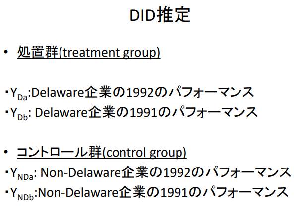 - 1992년 처리군(treatment group)인 Delaware 기업과 대조군(control group)인 비 Delaware 기업 비교