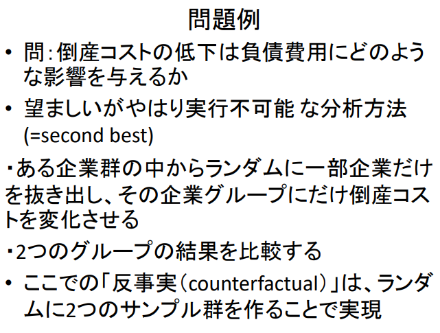 이 법 개정은 '자연실험'이라고 할 수 없다. - 이 법 개정이 자연실험이라고 할 수 있다면, 이를 이용하여 파산비용과 부채비율의 인과관계를 테스트할 수 있다.