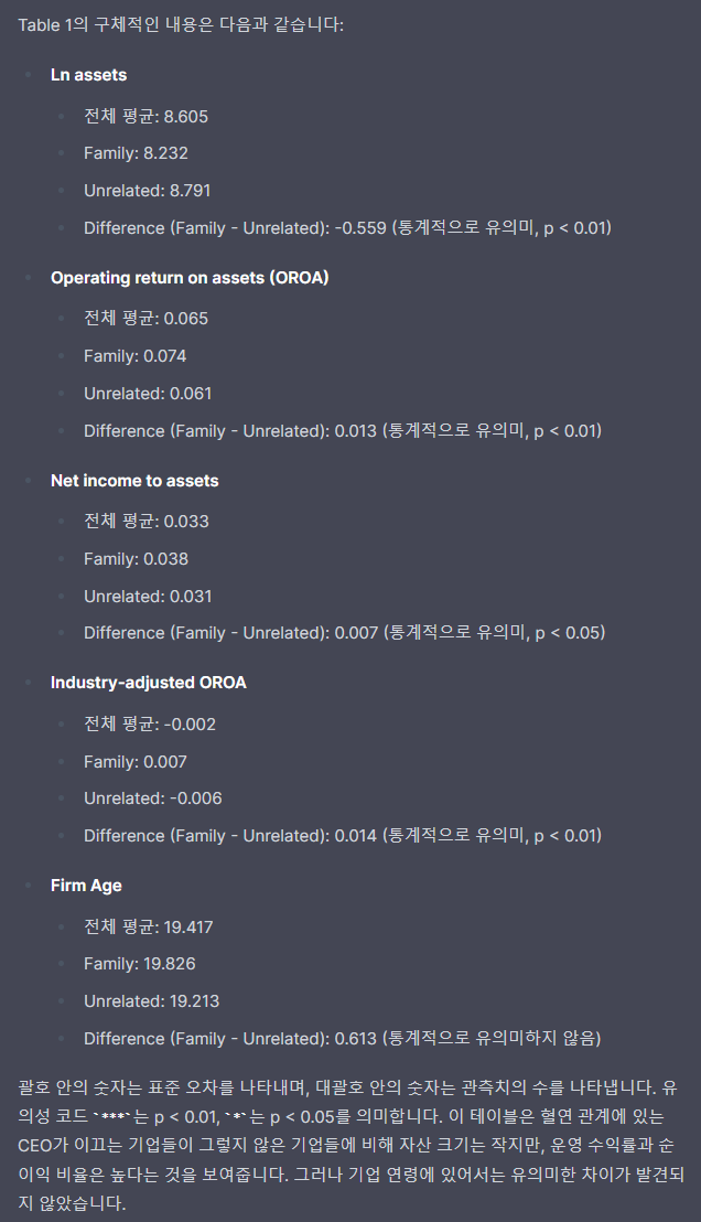 구체적인 검증 방법: "CEO가 동족 간 또는 동족에서 비동족으로 교체되기 전과 후의 기업 성과가 달라지는지 테스트한다."