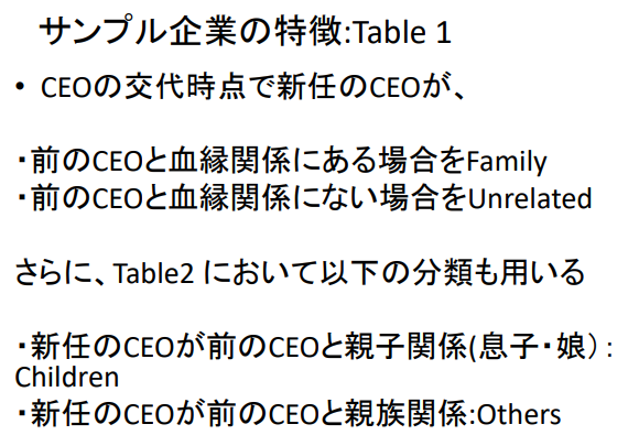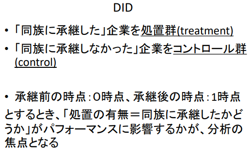 - '동족에게 승계하지 않은' 기업을 대조군(control)