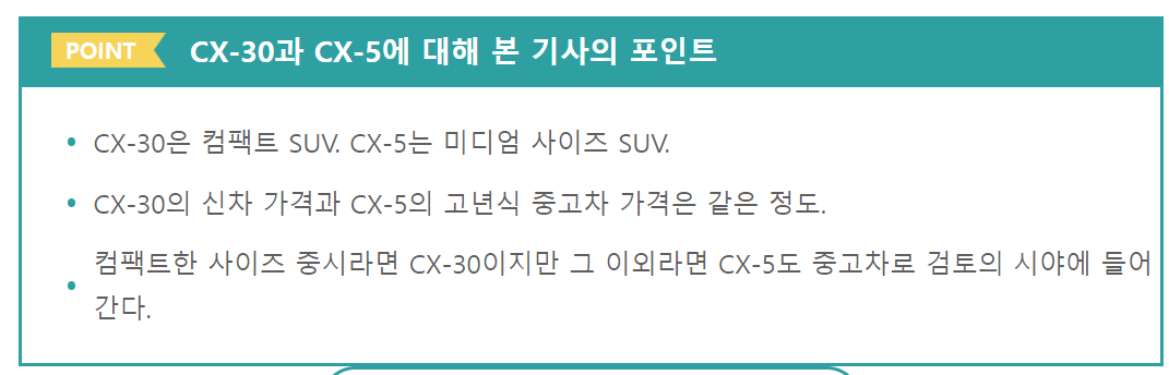 CX-30은 컴팩트, CX-5는 미디엄 사이즈라고 한다.