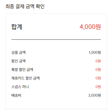배송비 - 찍스 2,500원 vs. 스냅스 3,000원