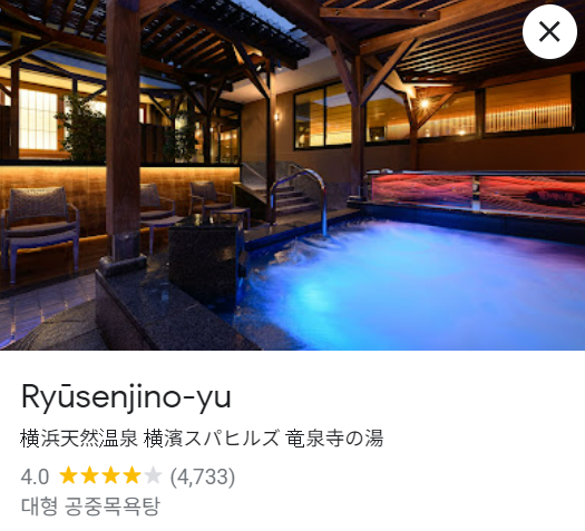 구글 평점 4.0 리뷰수가 5천개가 넘다니 엄청난 곳이다.. 류우센지노유 하치오지미나미노텐 · 3505 Katakuramachi, Hachioji, Tokyo 192-0914 일본 ★★★★☆ · 대형 공중목욕탕 www.google.com 니프티 온천 2022