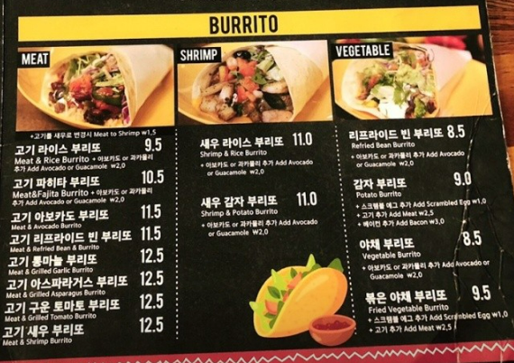 치폴레에서 먹은 엄청난 사이즈의 브리또가 잊혀지지 않아서 열심히 찾는데..