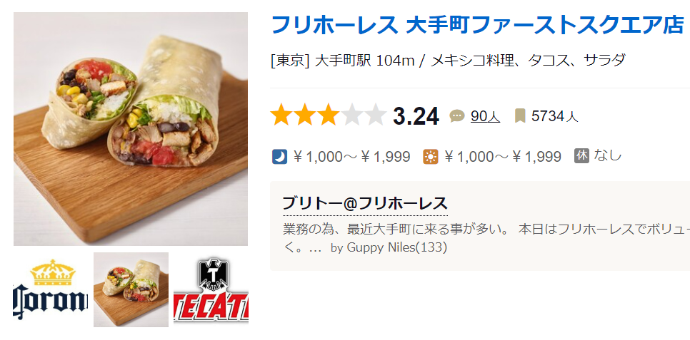 ★★★☆☆3.24 ■フリホーレスはヘルシーなブリトーやサラダをクイックに提供します ■予算(夜):¥1,000~¥1,999