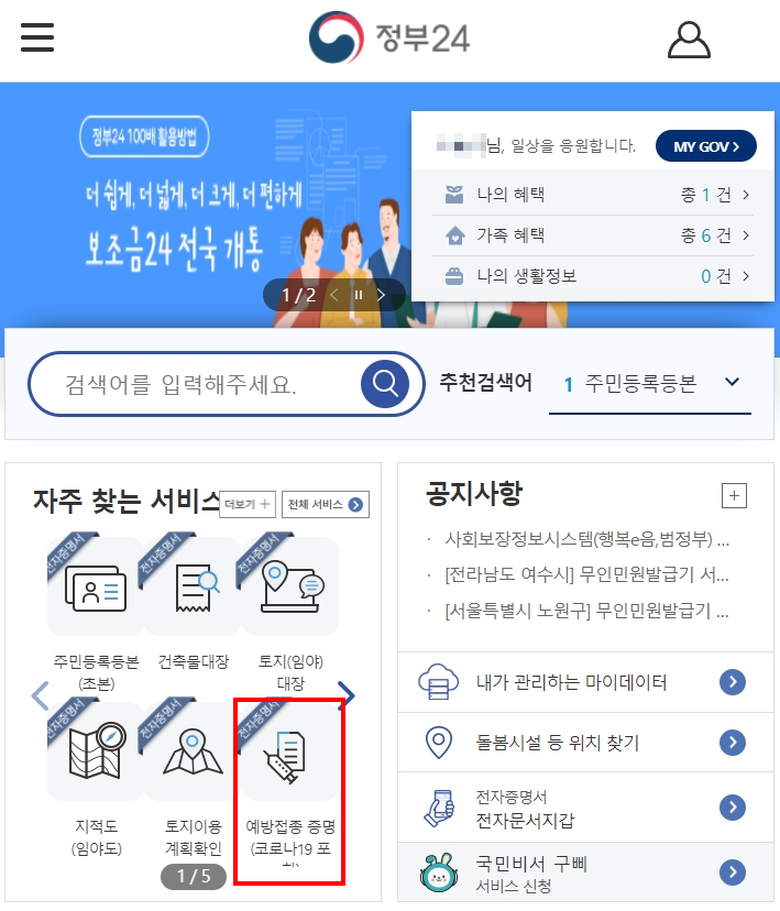 정부24에서 발급받기