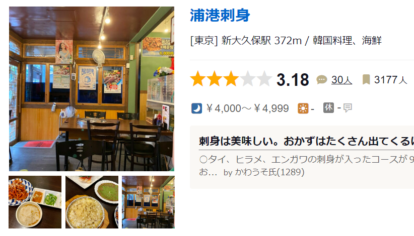 浦港刺身 (新大久保/韓国料理)