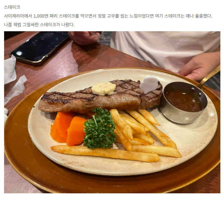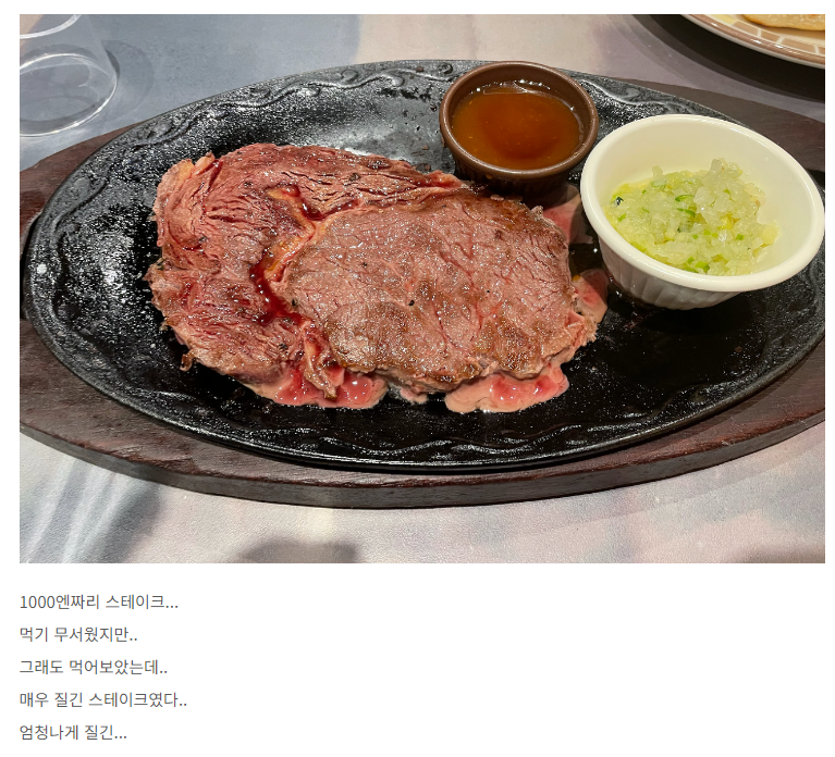예전에 사이제리아 1,000엔 스테이크가 너무 충격적이었어서