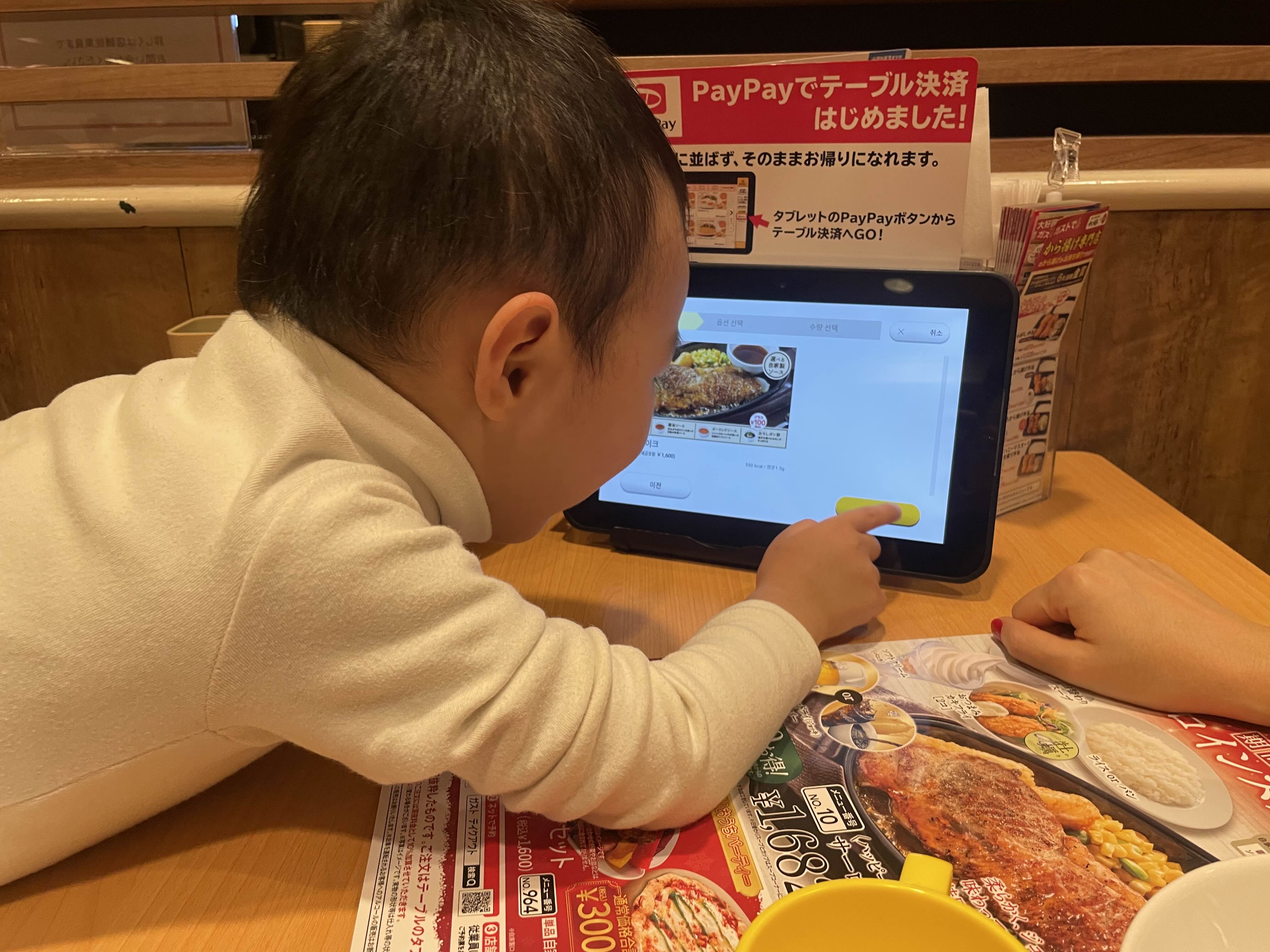 테블릿 주문을 즐거워 하는 코도모