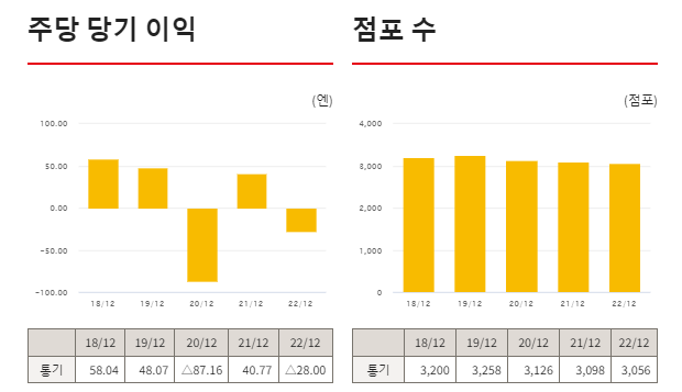 영업이익은 22년도 기준 적자인게 좀 아쉽다 -5,600만엔 (약 5.5억원)