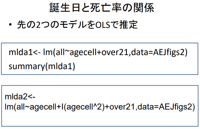 mlda2 <- lm ( all ~ agecell + I ( agecell^2 ) + over21 , data = AEJfigs2 )