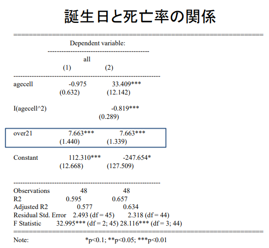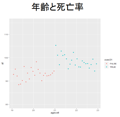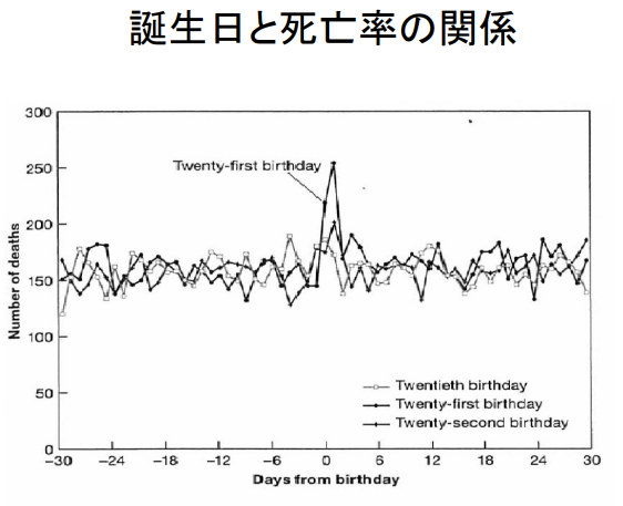 - 21세부터 생일 사망률이 불연속적으로 증가