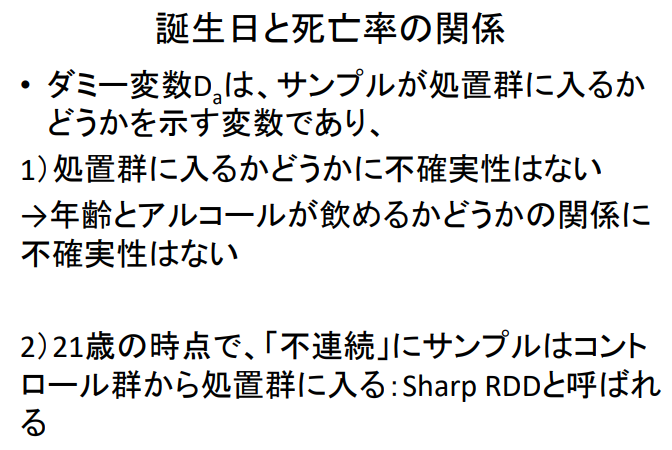 2) 21세 시점에서 "불연속적"으로 표본이 대조군에서 처리군으로 진입: Sharp RDD라고 한다.