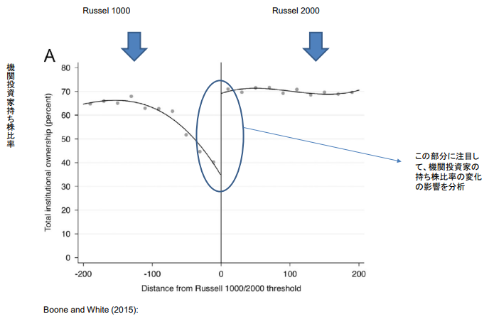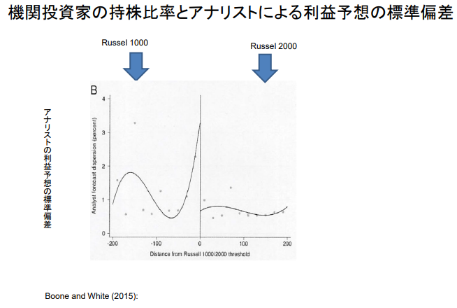 기관투자자의 지분율 변화가 기업의 정보공개 태도에 영향을 미치는지 불연속회귀를 통해 분석 - 주가 지수 중 하나인 Russell1000과 2000의 구축방식의 특징에 주목하여