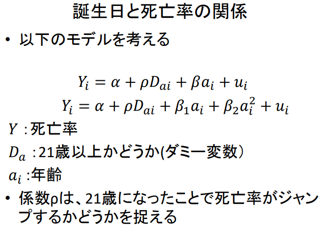 𝑌ᵢ = 𝛼 + 𝜌 𝐷ₐᵢ + 𝛽 𝑎ᵢ + 𝑢ᵢ