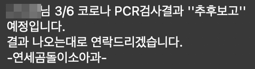 선별진료소에서 검사했을 때는 비교적 새벽 시간에 문자가 왔는데 이번에는 꽤나 늦게 문자가 왔다.