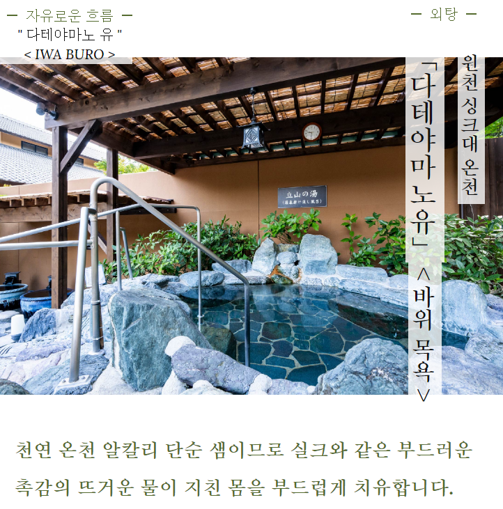 개인적으로는 다양한 온천을 다니는 것을 좋아해서 매번 새로운 곳을 가는데