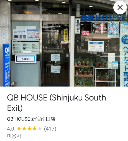 구글 평점 3.4점.. QB House · 일본 〒102-0083 Tokyo, Chiyoda City, Kojimachi, 3 Chome−4−1 麹町3丁目B.L.D 1F ★★★☆☆ · 미용사 www.google.com QB하우스를 처음 알게 된 것은 JM의 영상에서다 일본은 90년대 살