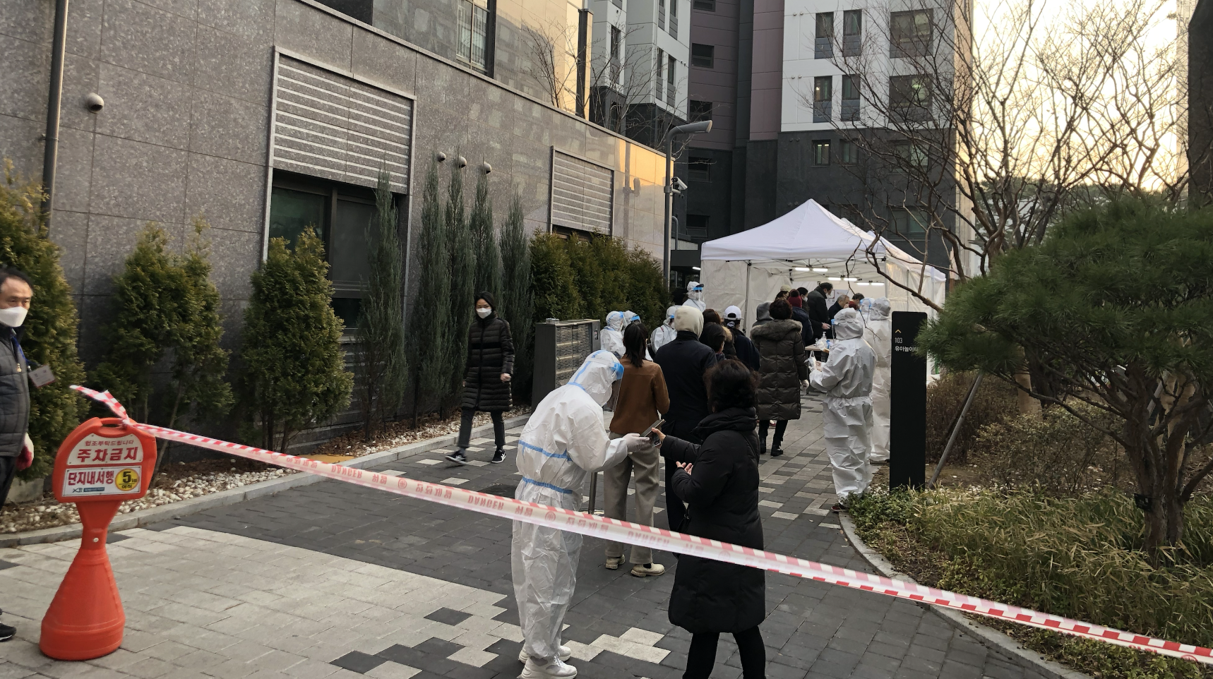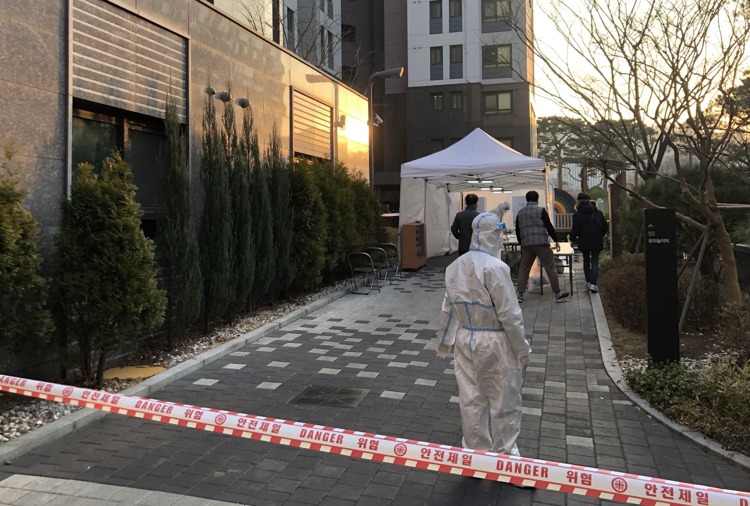 멀지 않은 곳에 투표장이 있어서 바로 도착했는데, 일반인 투표하는 장소와는 다르게 실외에 별도로 공간이 마련되어 있었다.