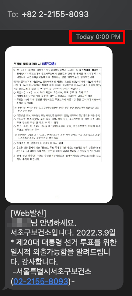 투표일 0시에 투표하러 가도 된다는 문자가 발송되었다.