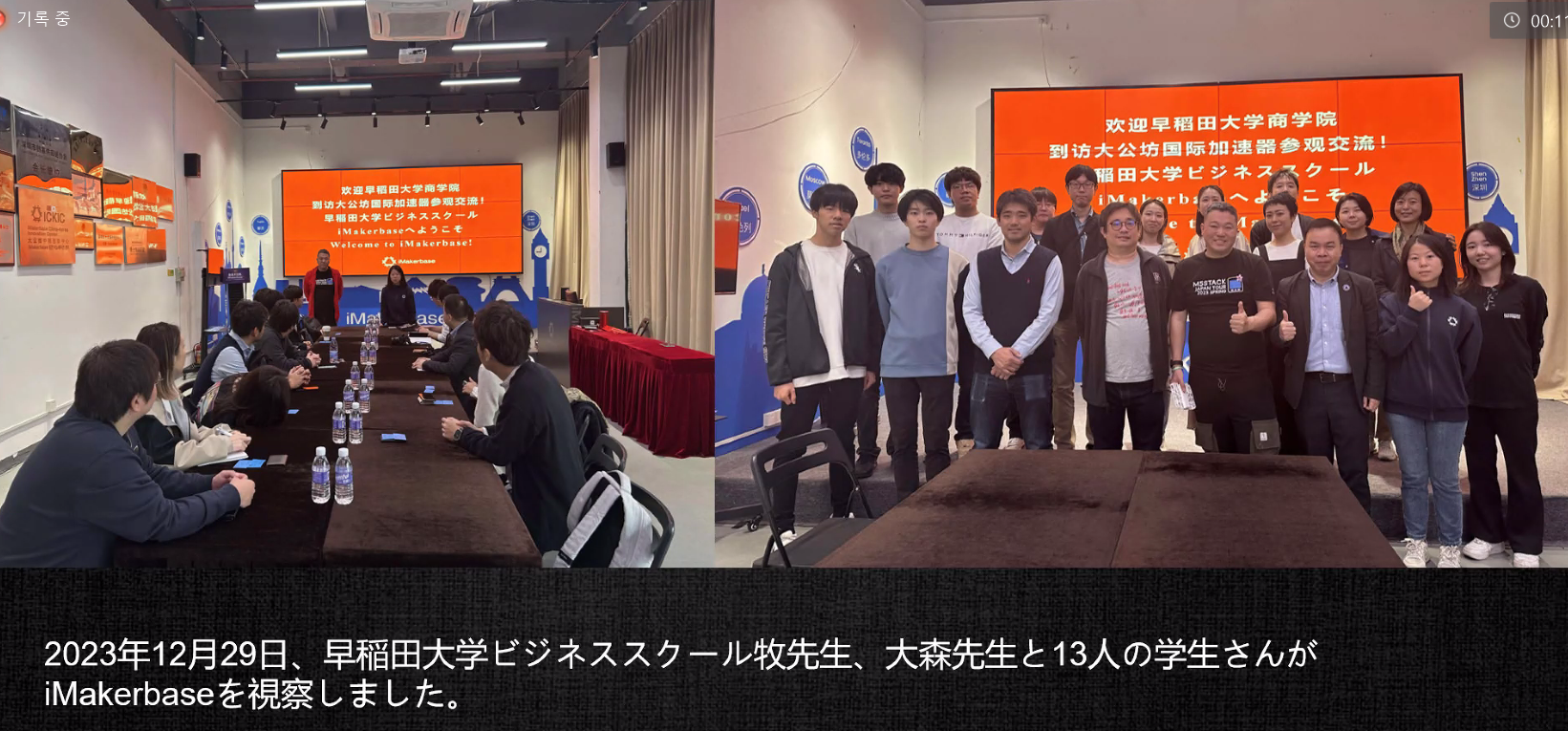 2023년 12월 29일, 와세다대학교 경영대학원 마키 선생님, 오모리 선생님과 학생 13명이 iMakerbase를 견학했다.