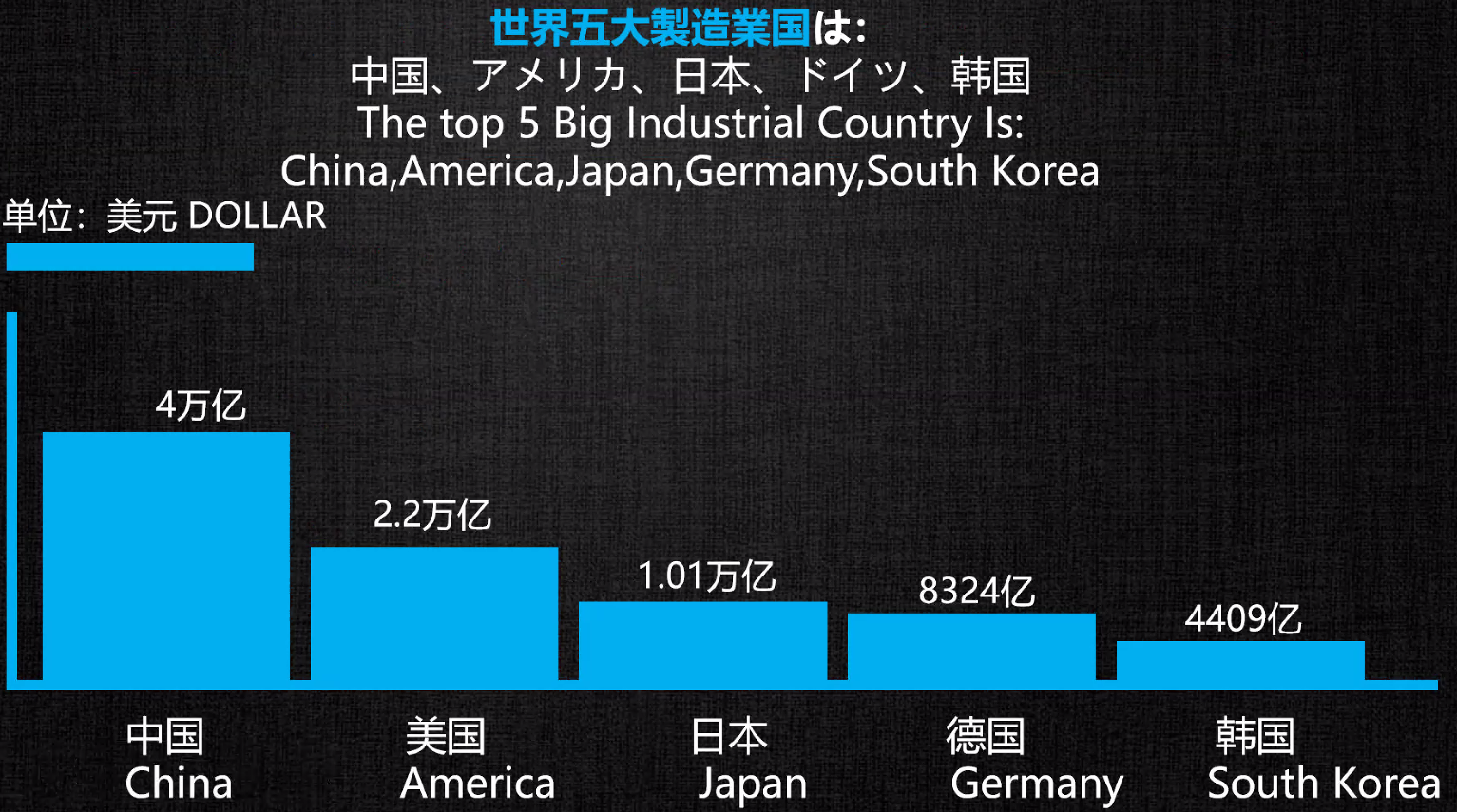 세계 5대 제조 국가는: 중국, 미국, 일본, 독일, 한국