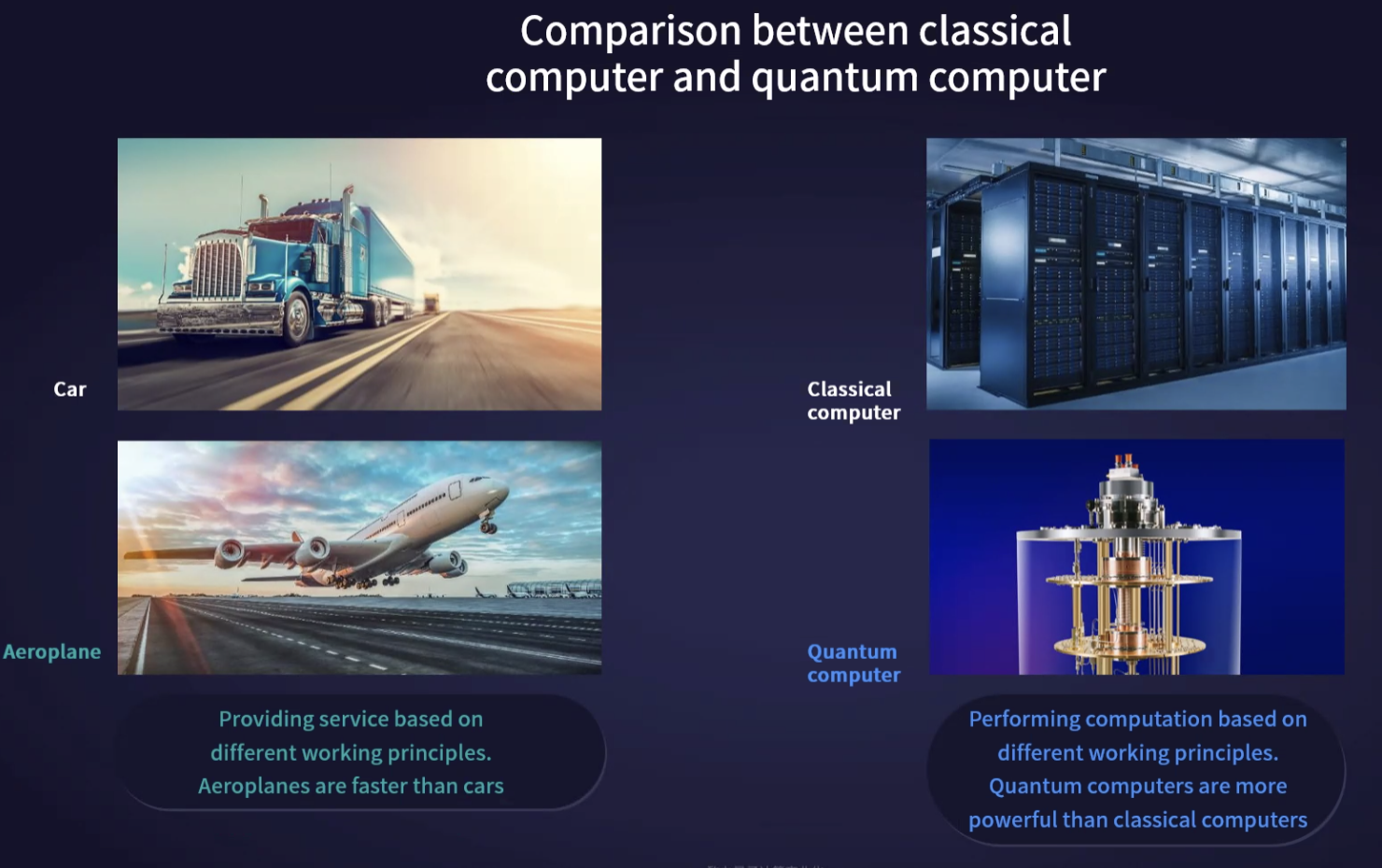 자동차와 비행기가 양립할 수 있는 것처럼, 양자 컴퓨터와 고전 컴퓨터는 양립할 수 있는 것입니다.