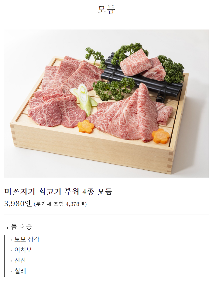 예산이 좀 남아서 추가 고기를 주문했다 모듬 4,378엔