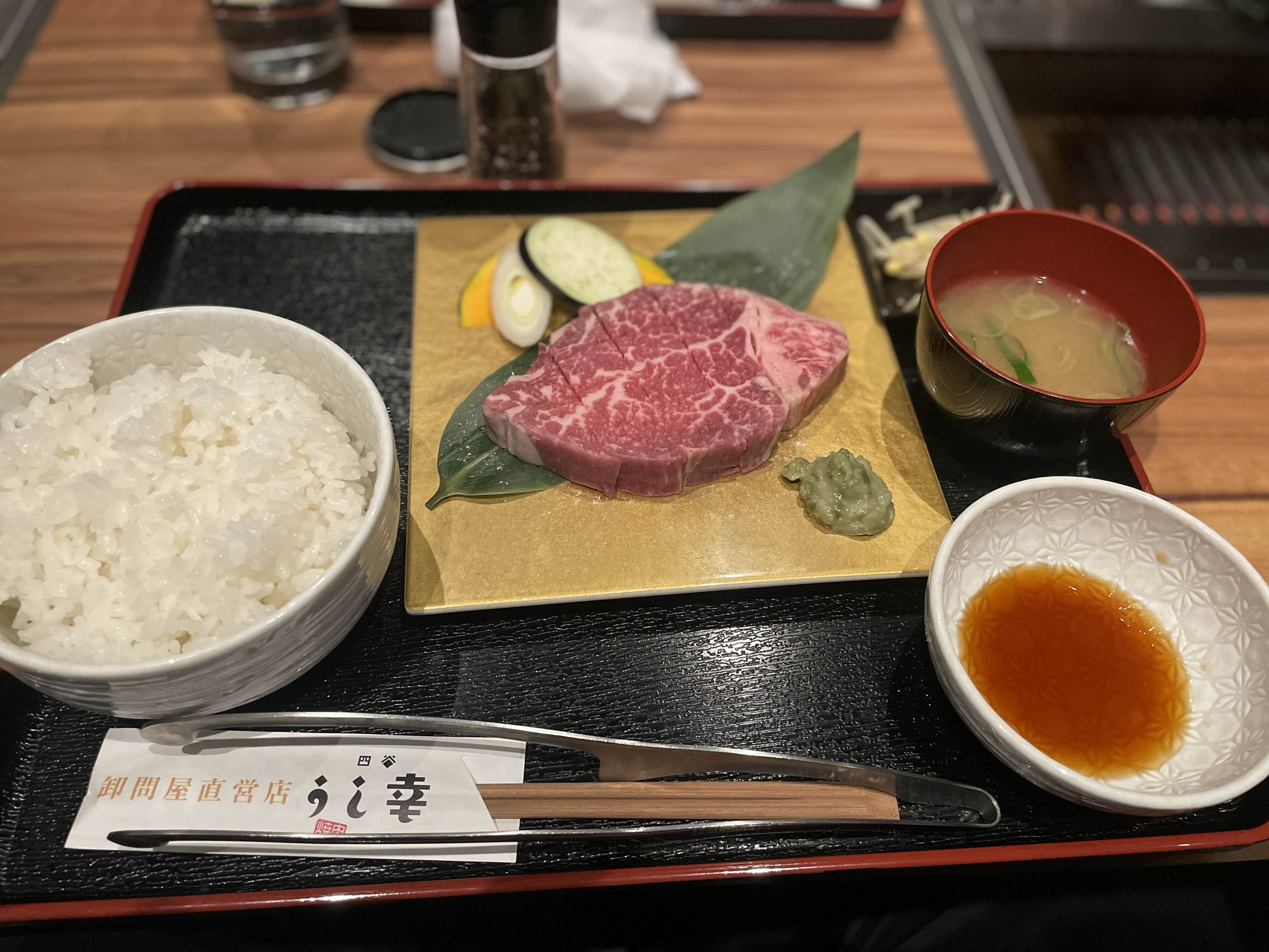회사돈으로 얻어먹는거라서 일단 히레 두껍게 썰린 고기를 주문했다 3,828엔