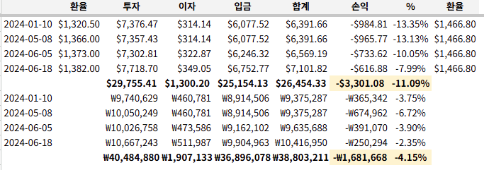 그래도 원화도 폭락해서.. 대충 4% 손실로 방어할 수 있었다..