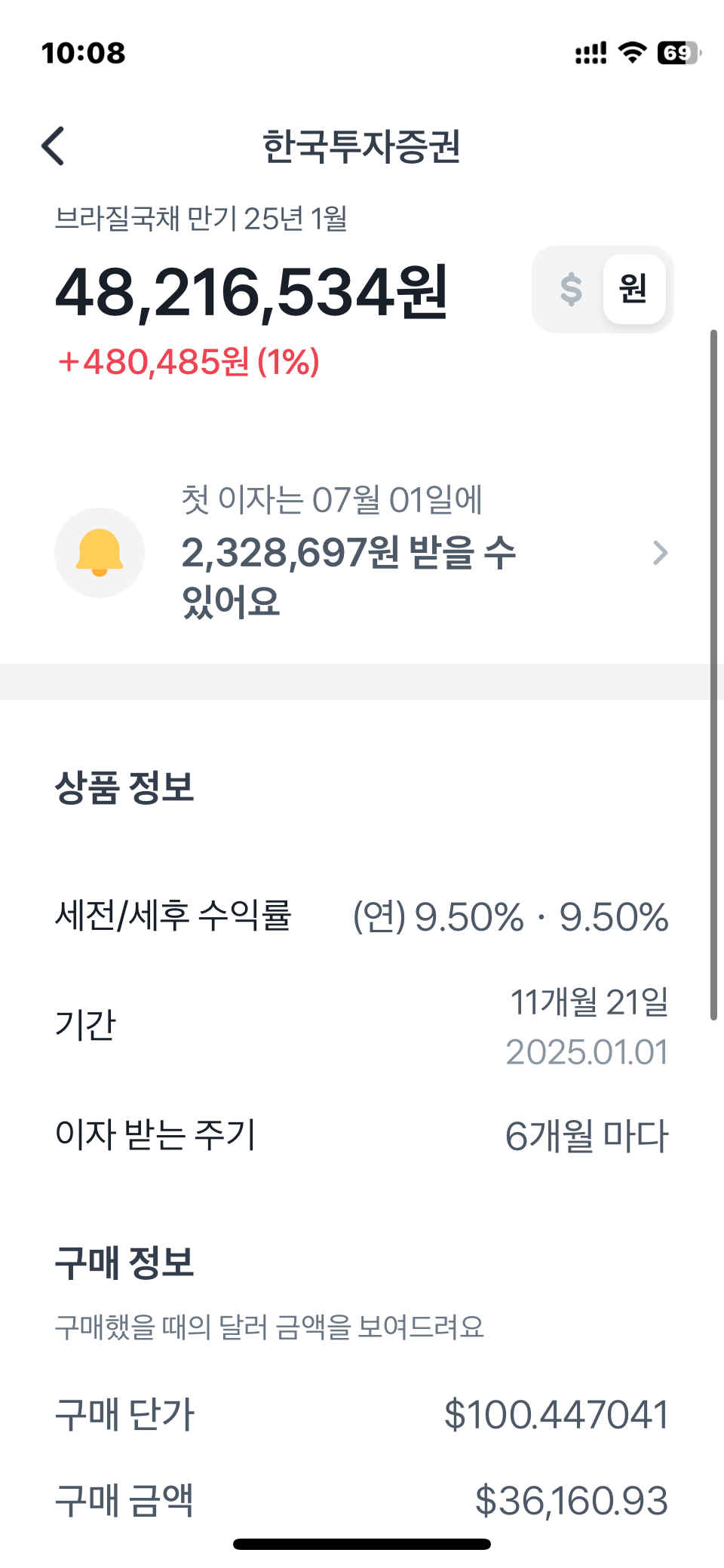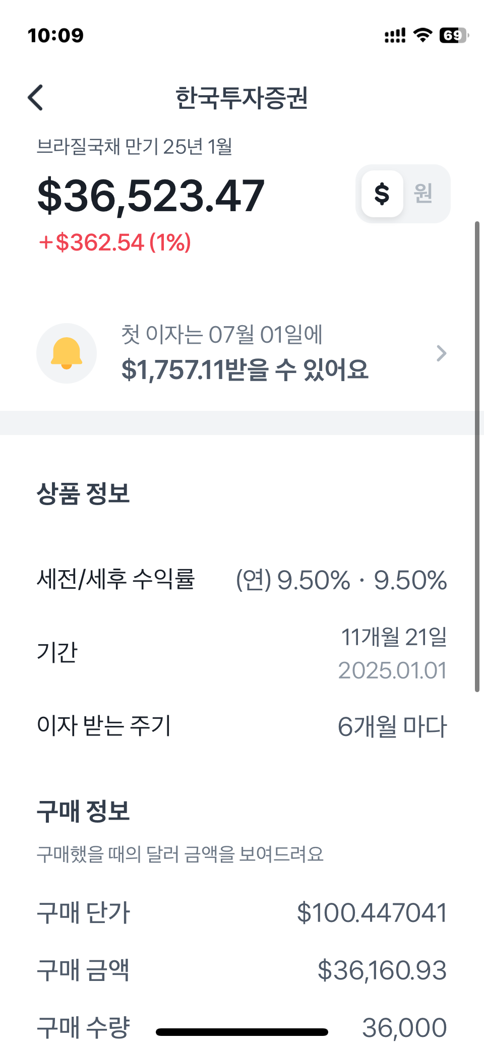 토스앱에서는 브라질 채권을 공식적으로 출시를 하지 않다보니까 헤알화를 USD로 인식하는것 같다.. ㅋㅋㅋ