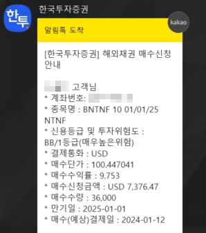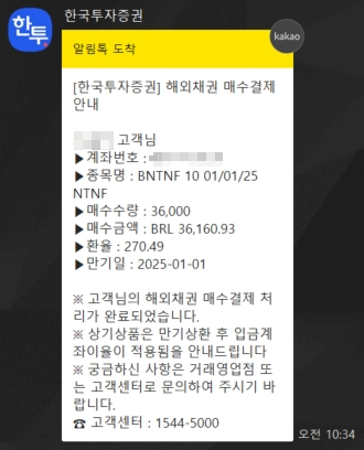 한국투자 앱에 들어가서 장외, 해외채권으로 들어가면
