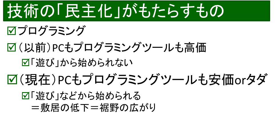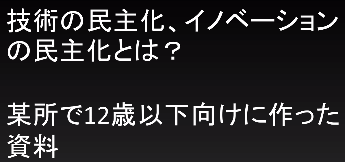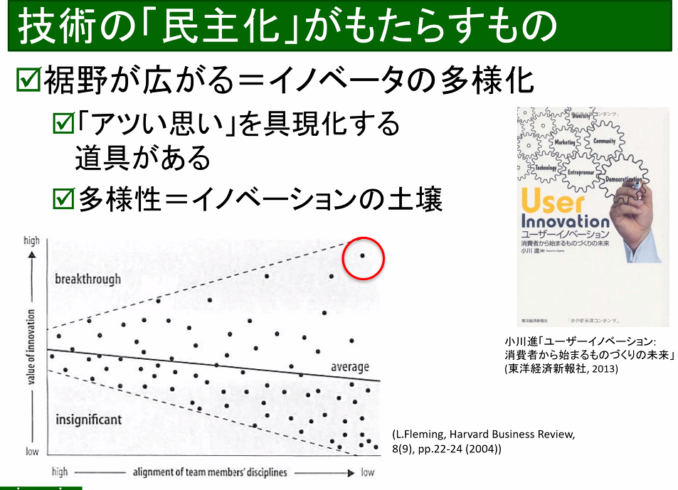 기술 개발의 민주화, 혁신의 민주화의 혜택을 받아 자신이 하고 싶은 일을 널리 알리려고 한다.