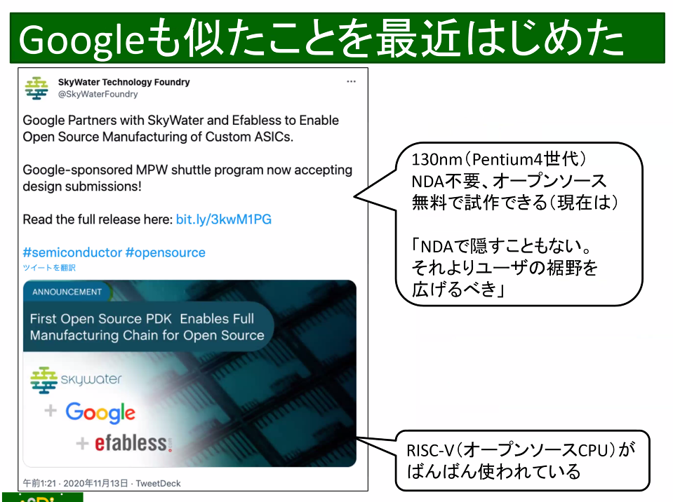 130nm(펜티엄 4세대) NDA 불필요, 오픈소스 무료로 시제품 제작 가능(현재는)