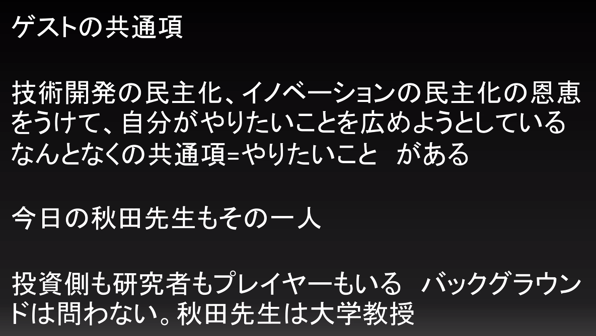 투자자도 연구자도 플레이어도 있다. 배경은 상관없다. 아키타 선생님은 대학교수