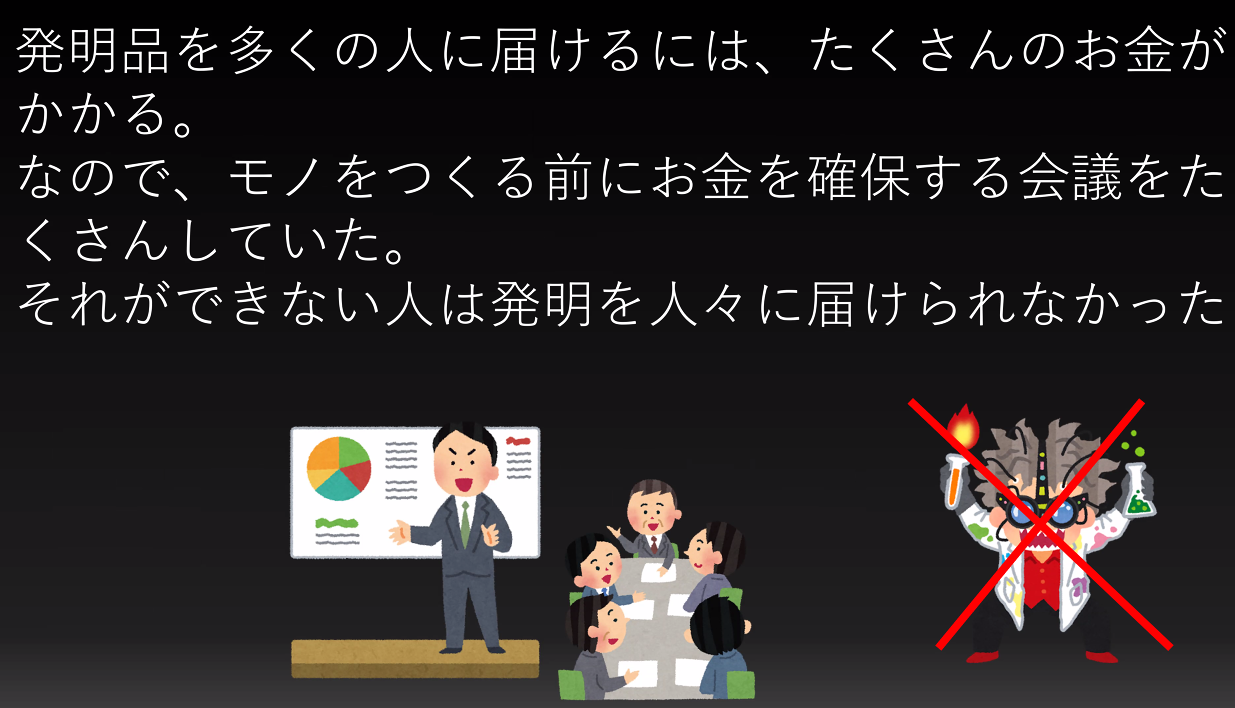 발명품을 많은 사람들에게 전달하기 위해서는 많은 돈이 든다.