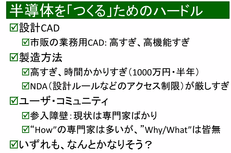- '집적회로를 만들 수 있다'는 도구 = '지금 할 수 있는 것'이라는 발상의 굴레에서 벗어날 수 있다.