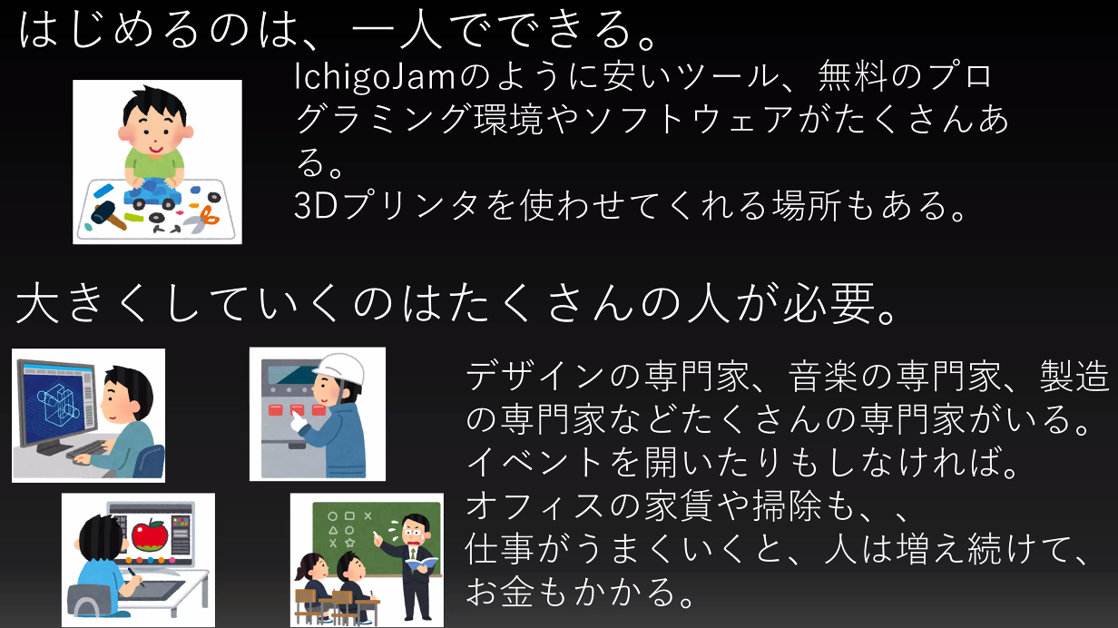 디자인 전문가, 음악 전문가, 제조 전문가 등 많은 전문가가 필요하다.