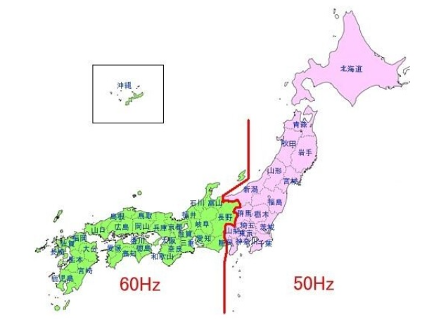 일본 동부는 50Hz, 서부는 60Hz..?