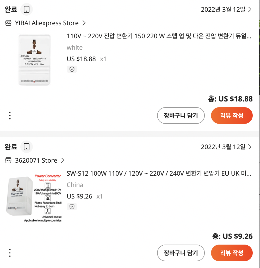한국에서 사용하는 소형 가전을 모조리 다 버리고 가기는 아까워서