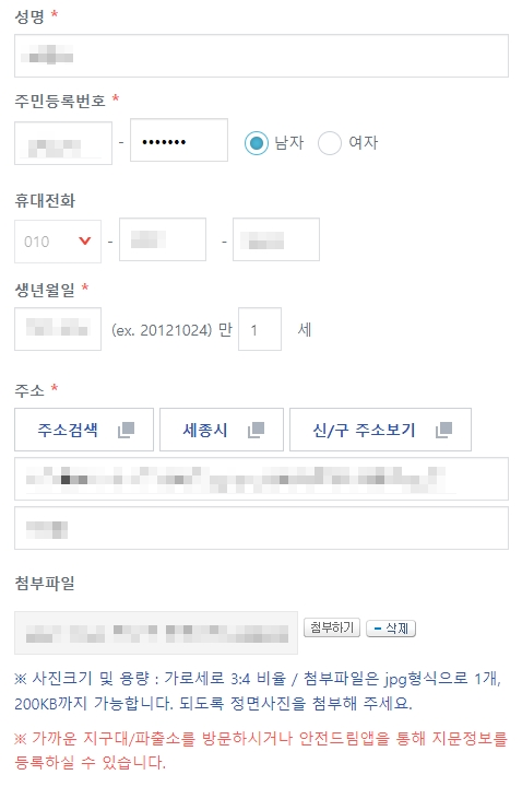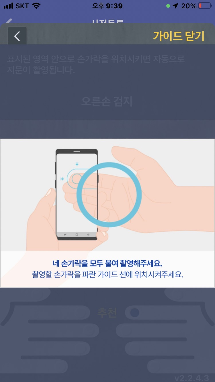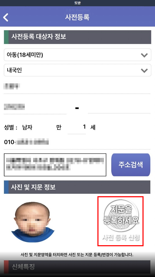 홈페이지에서 등록하면 경찰서 가서 지문을 등록해야되지만, 앱으로 하면 실제 지문 촬영까지 가능하다.