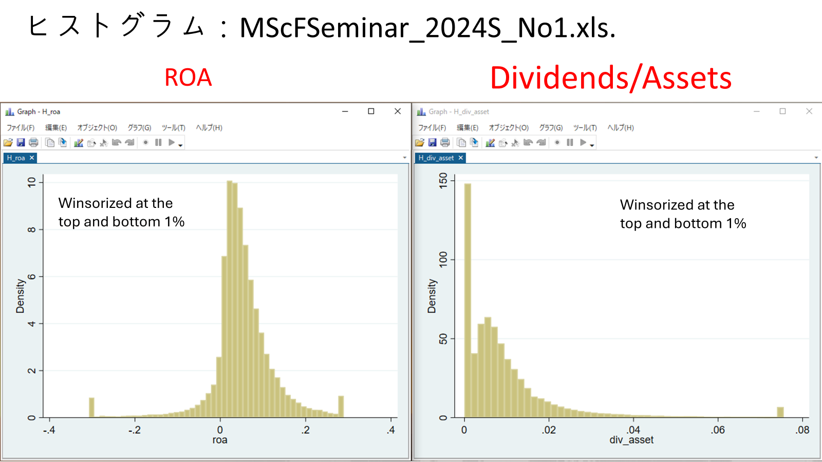- 연습: 다음 정보는 일본 기업의 재무 데이터를 수록한 MScFSeminar_2024S_No1.xls에서 생성된 것입니다. High Dividend, Low Dividend 그룹 간의 ROA 평균 차이에 대한 t값을 계산하고, 배당이 수익성과 긍정적인 관계가 있는지 판단하십시오.