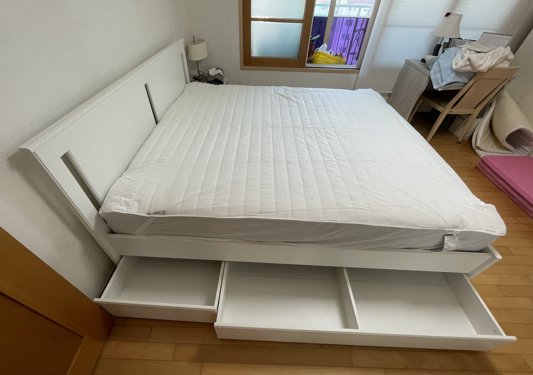 이렇게 매트리스까지 설치하고 나니 제법 그럴싸한 침대가 완성되었다!