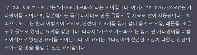 가쓰오는 가다랑어라고 하고 카르파초는 이탈리아 요리라고 한다고 한
